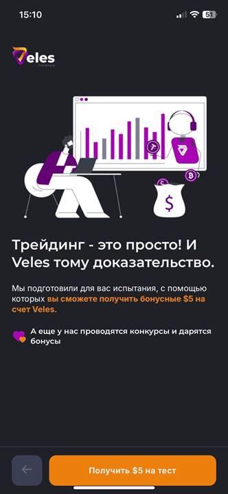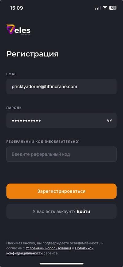 После того, как Вы скачали приложение, залогиньтесь в нем. Если у Вас еще нет аккаунта, то нужно зарегистрироваться. При регистрации на сайте Veles, Вы получаете 5 долларов в качестве бонуса!