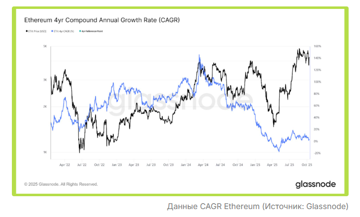 Кроме того, CAGR позволяет сравнивать доходность криптовалют и традиционных активов. Например, среднегодовой темп роста Ethereum за период с 2020 по 2025 год составил около 62%, тогда как индекс S&P 500 лишь около 15%, что свидетельствует о том, что криптовалюты по-прежнему являются классом активов с выдающимися темпами роста.