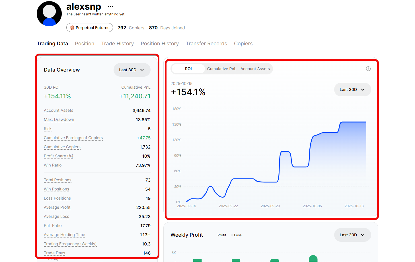 Трейдеры могут накручивать рейтинги, используя несколько аккаунтов. Краткосрочная прибыль (7 дней) может быть удачей, а не навыком. Исторические убытки могут быть скрыты, если не закрывать сделки |