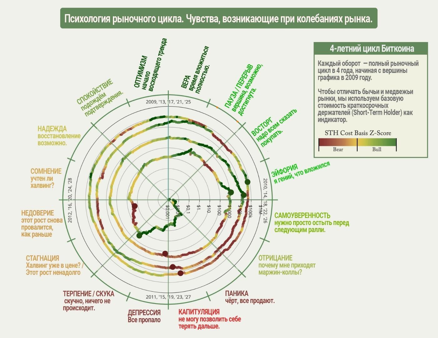 Несмотря на колоссальную волатильность, каждый последующий цикл приводит к значительному росту стоимости Биткоина в долгосрочной перспективе. В тоже время психология толпы (страх и жадность) повторяется снова и снова.