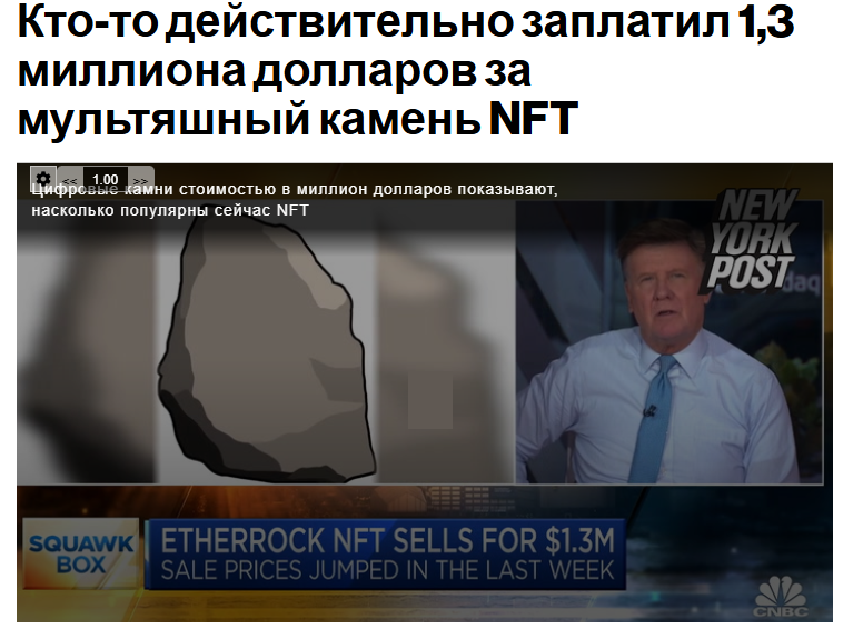 - Появляются громкие и кричащие новости о том, что кто-то купил мультяшный крипто-камень за $ 1.3 млн.