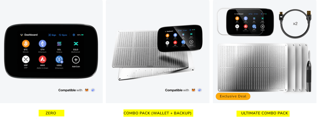 Дорогой, избыточная безопасность уровня EAL7, высокий риск ошибок при нанесении сид-фразы на стальную пластину.
