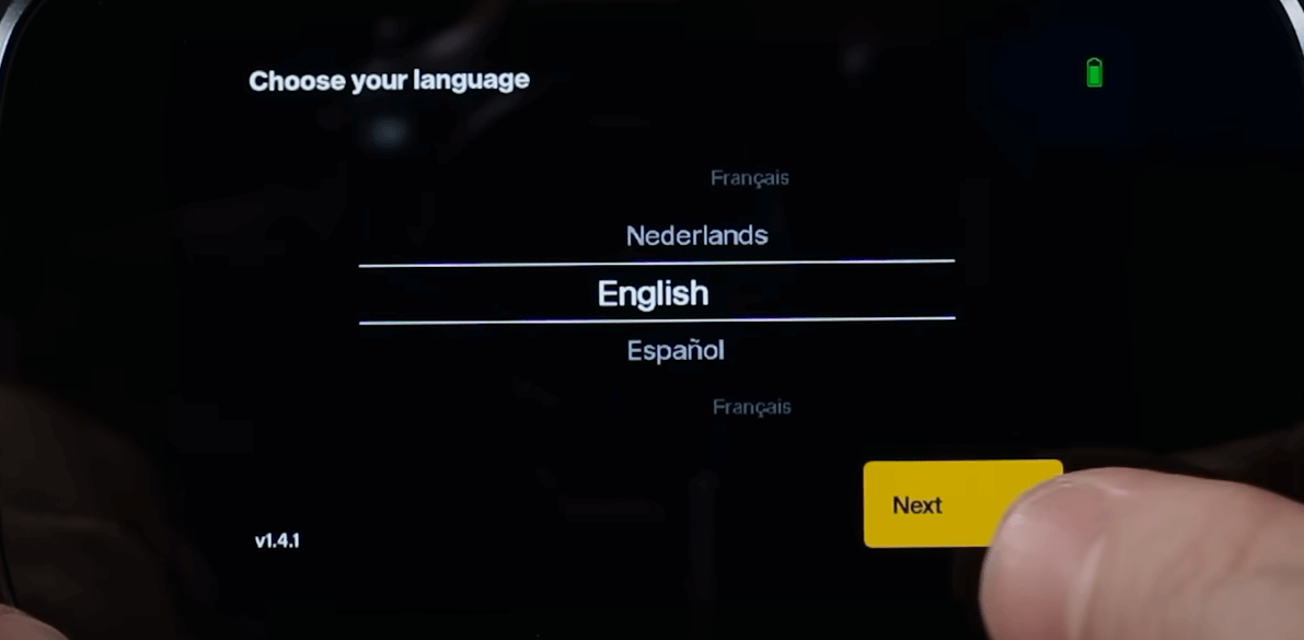 Перед первым включением кошелек необходимо полностью зарядить, так как аккумулятор быстро разряжается. После включения выберите язык и примите условия лицензионного соглашения.