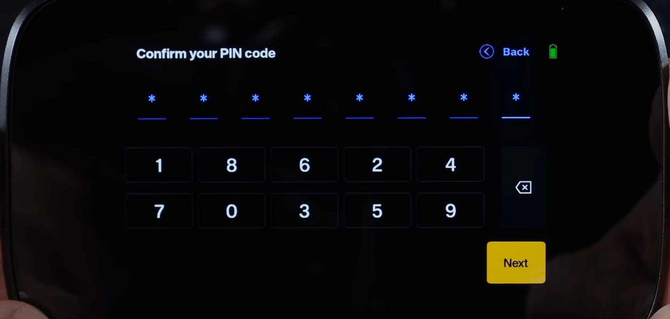После сканирования введите код безопасности, отображаемый на кошельке, и тогда появится сообщение о том, что устройство безопасно для использования.