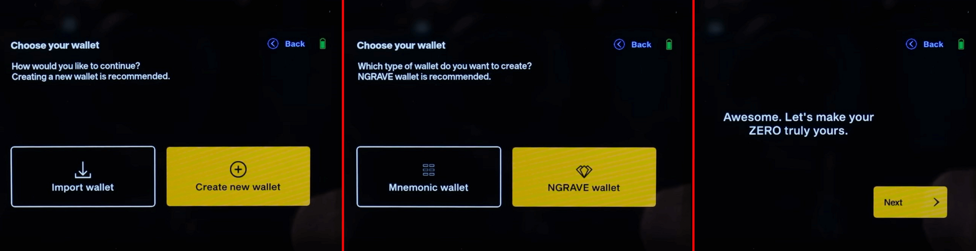 Теперь Ngrave предложит создать новый кошелек или импортировать уже существующий.