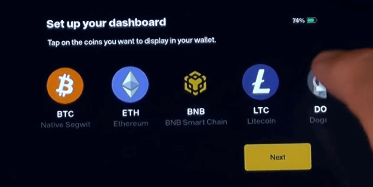 После завершения резервного копирования, вам предложат выбрать монеты, которые будут отображаться в кошельке.