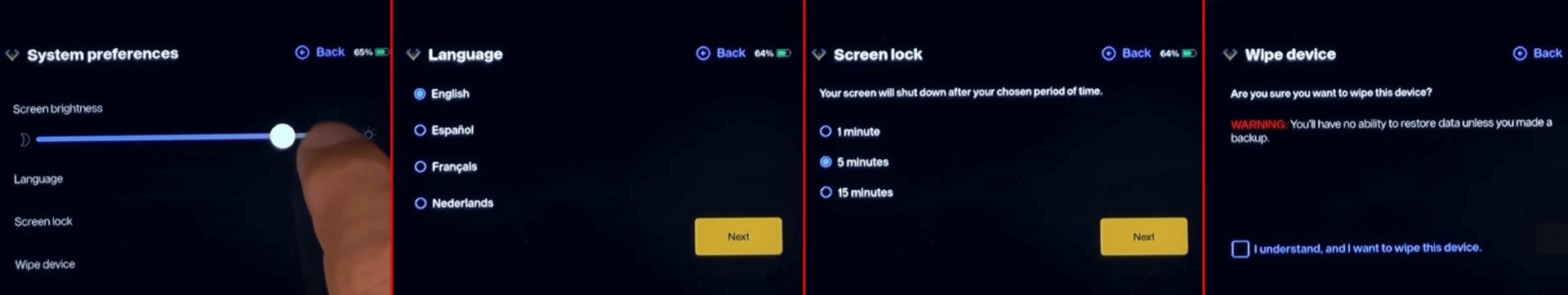 Внутри установлена единственная в мире для потребительского сегмента операционная система с сертификатом безопасности EAL7, обычно применяемая в правительственных проектах. Она отвечает за обновление прошивки, безопасную загрузку и изоляцию порта USB-C.