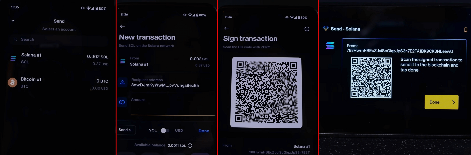 - подпишите транзакцию на Zero и отсканируйте получившийся QR-код телефоном для трансляции в сеть.
