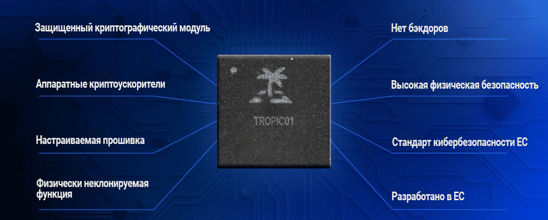 | Архитектура реализована на 2-х чипах; взлом возможен лишь в лабораторных условиях. | Новый чип TROPIC01 еще не прошел многолетние испытания, как у конкурентов. |