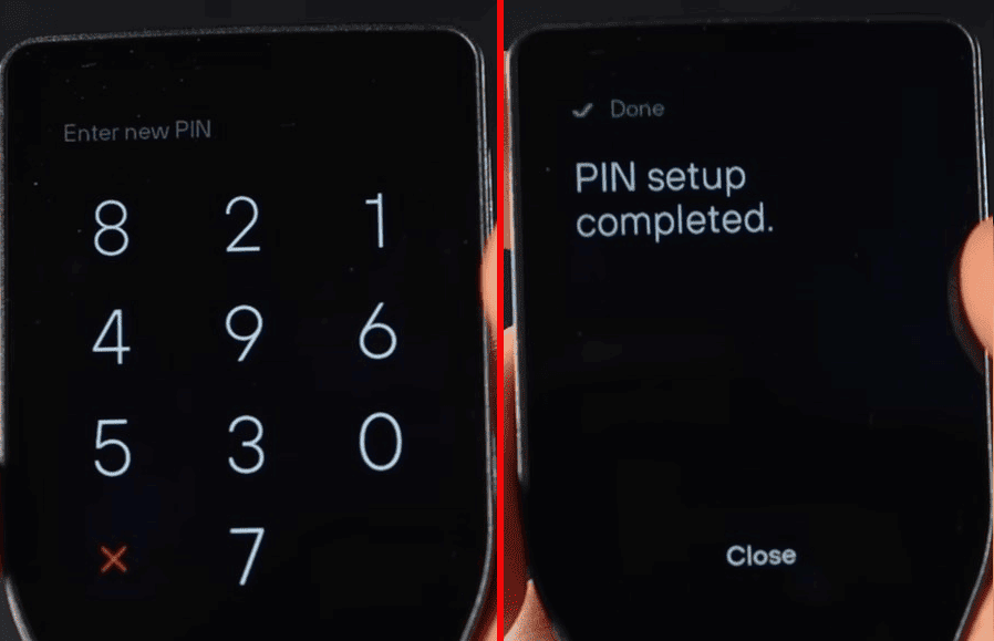 Создайте ваш новый PIN-код и введите его повторно. Как только вы увидите PlN setup completed, нажмите Close.