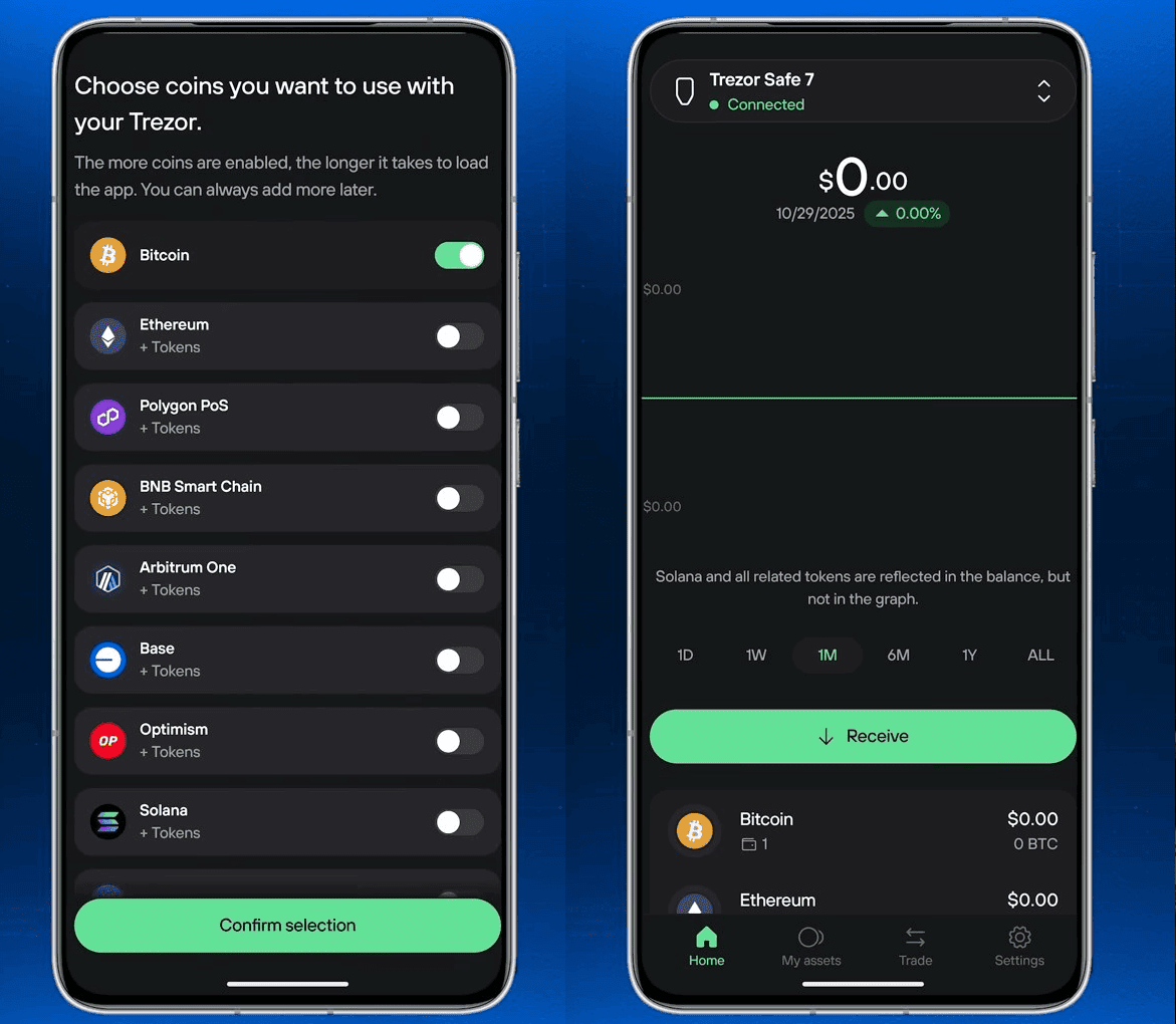 Trezor Safe 7 – это аппаратный кошелек с двумя чипами безопасности и беспроводным соединением через собственный протокол Trezor Host. Он поддерживает более 8.000 криптовалют и более 100 сетей, включая сети ERC-20, Solana, BNB и другие EVM-сети.