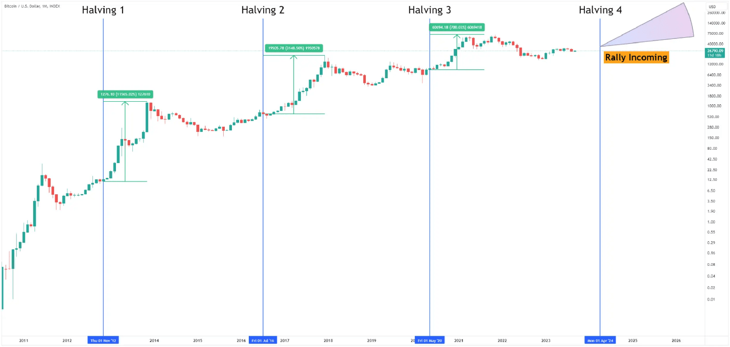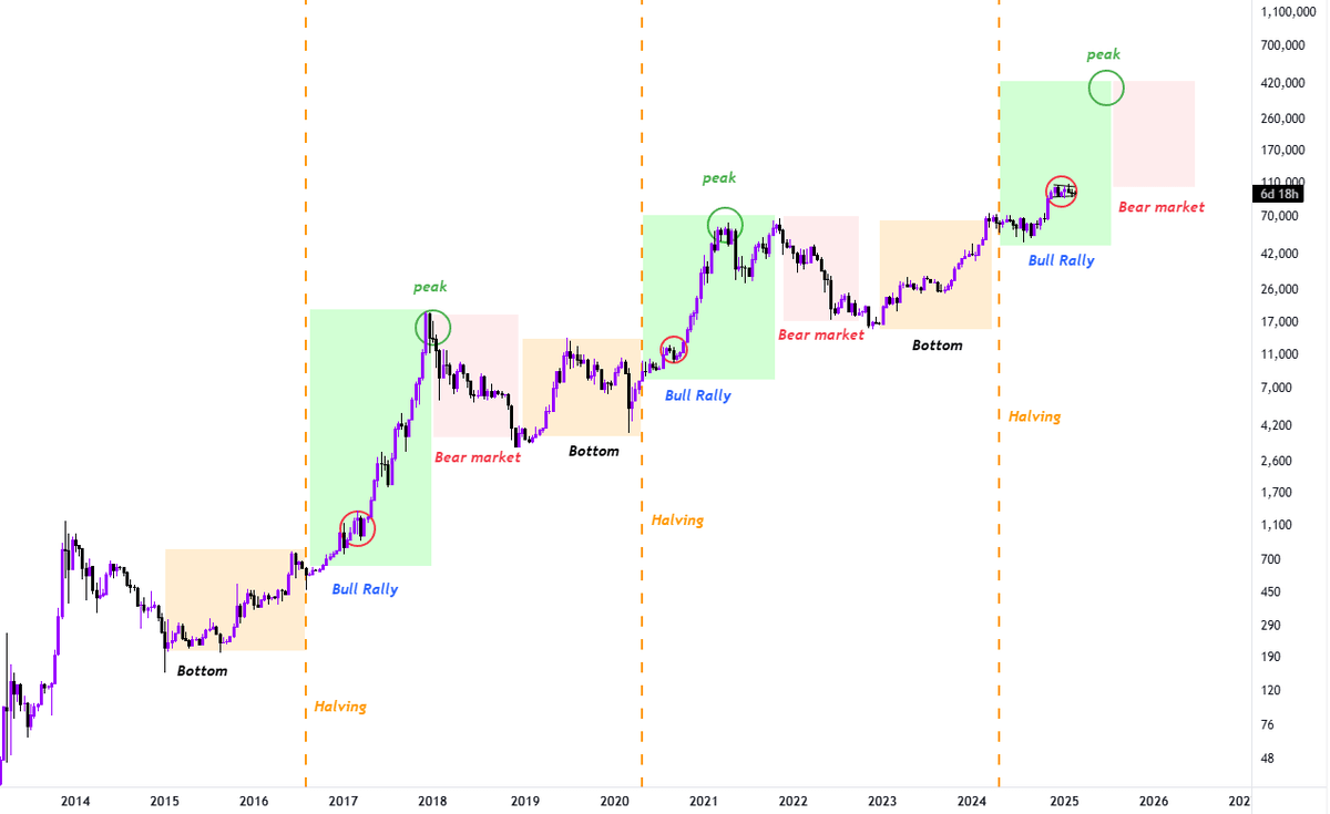 It is commonly accepted that Bitcoins growth cycle follows roughly four-year periods, where the reduction of new coin issuance (the halving) often precedes significant price increases.
