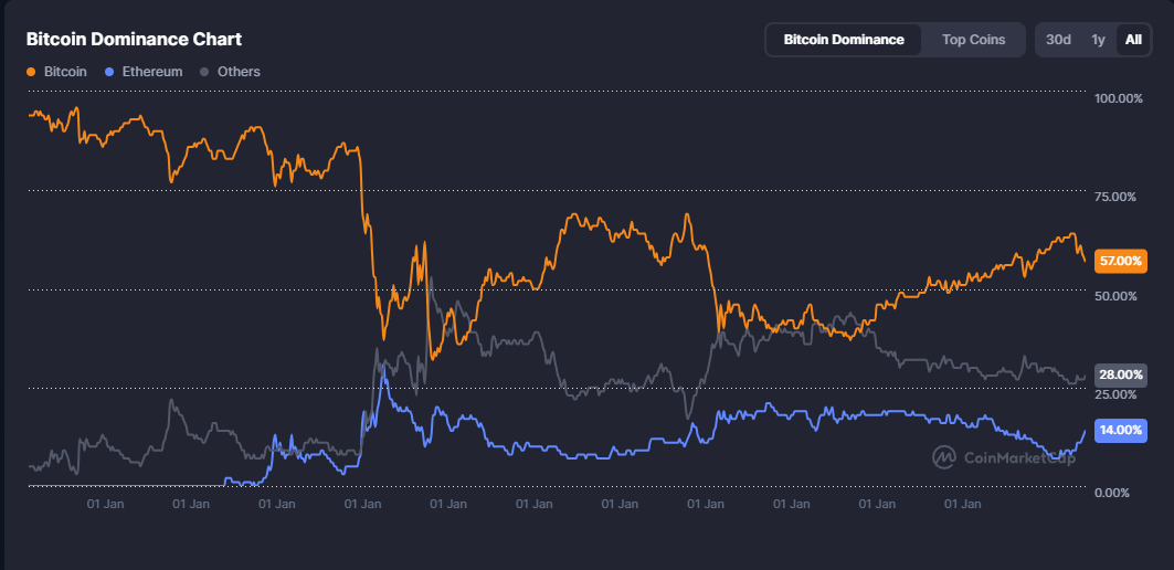 Current BTC dominance does not confirm such an ending, however the probability of a sharp reversal always remains.
