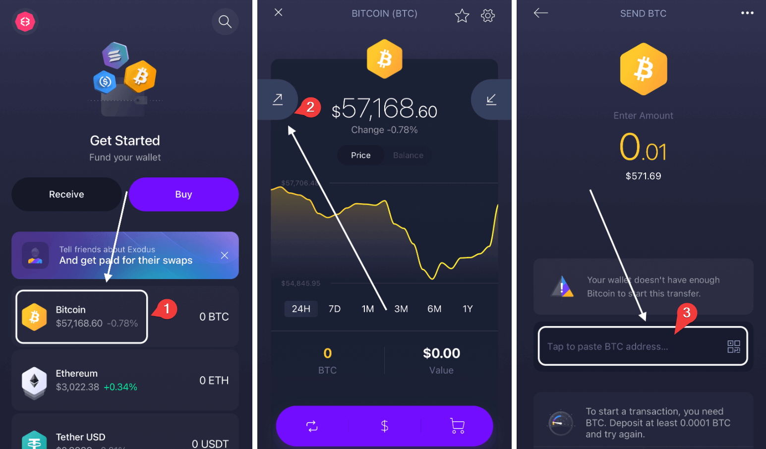Review the details and confirm. Exodus makes sending crypto fast and simple.
