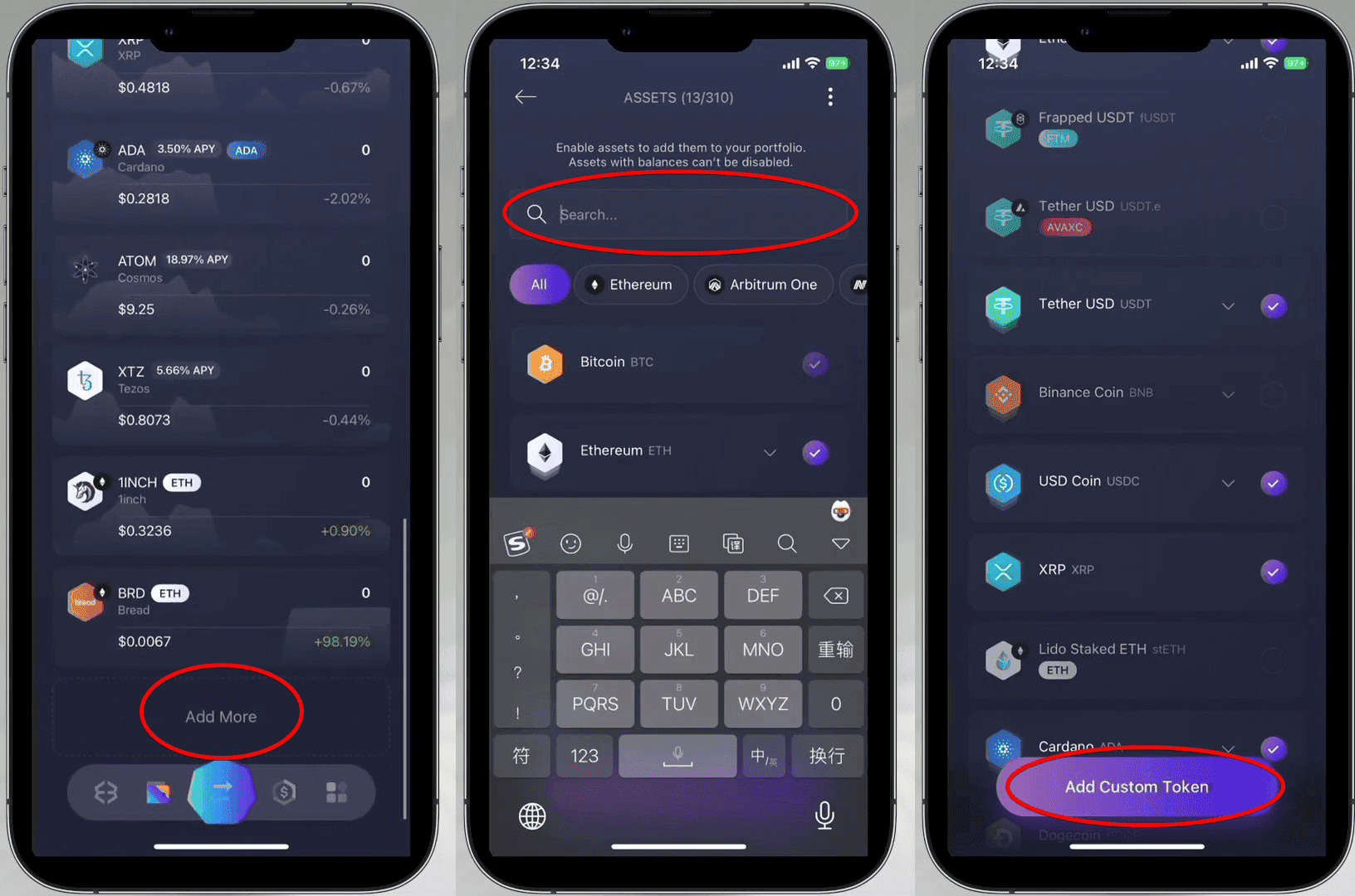 To customize your list, scroll to Add More and disable tokens you don’t use, such as Binance Coin.