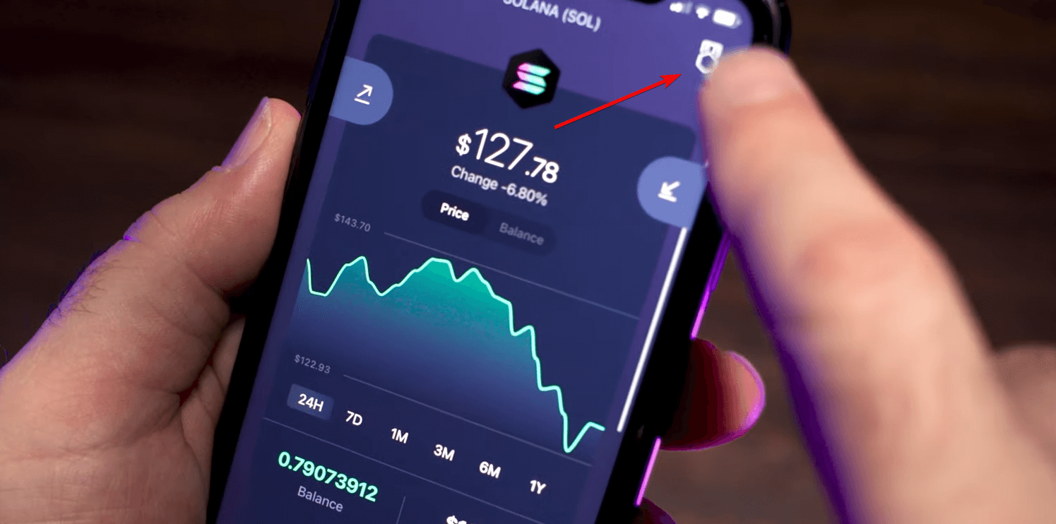 All coin addresses are in the first tab, Wallet. Here you’ll see supported assets like Bitcoin, Ethereum, Solana, and more.