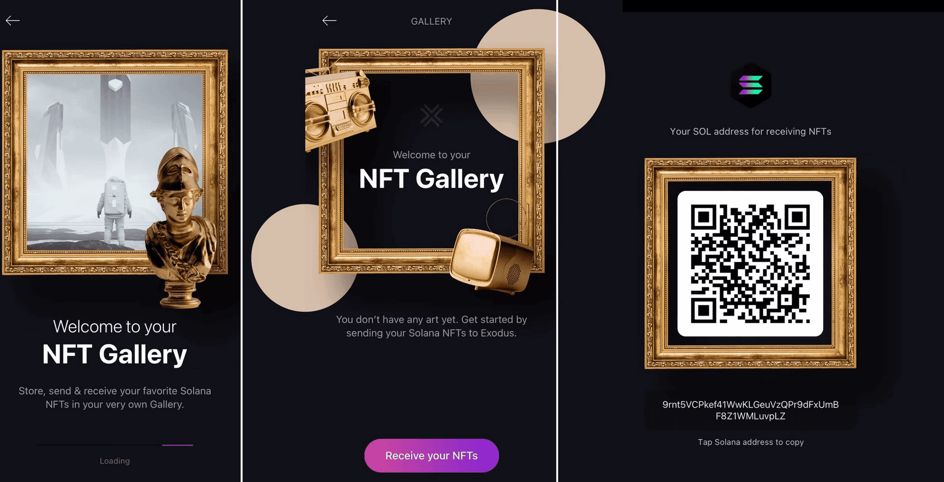 This gallery supports NFTs on Ethereum, Solana, Algorand, and more, so you can browse and interact with all your collectibles in one place.
