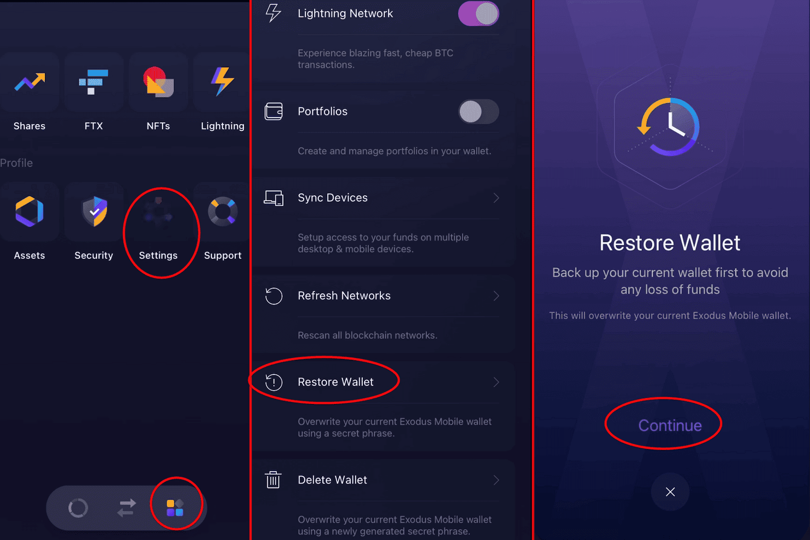 The Restore Wallet option also lets you replace the current wallet with another seed phrase, handy for managing multiple wallets.