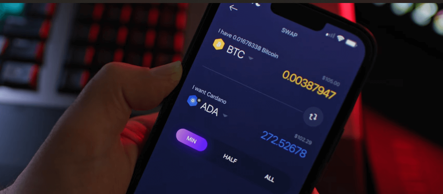 To swap, tap Swap, select your coins (via list or search), enter an amount (toggle between crypto and fiat, or use MIN, Half, Max). For precise amounts (e.g., 100 ADA), type it in and Exodus will calculate the best rate.