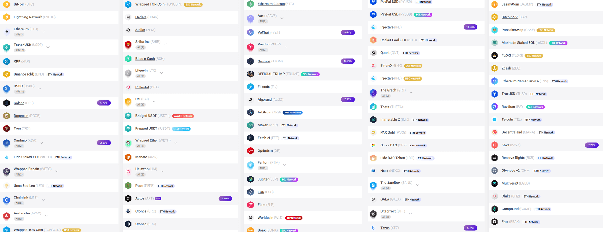 The app also supports purchasing crypto via third‑party providers like Moonpay and Sardine.ai. This is usually the most expensive option compared to exchanges such as Binance or Bybit.