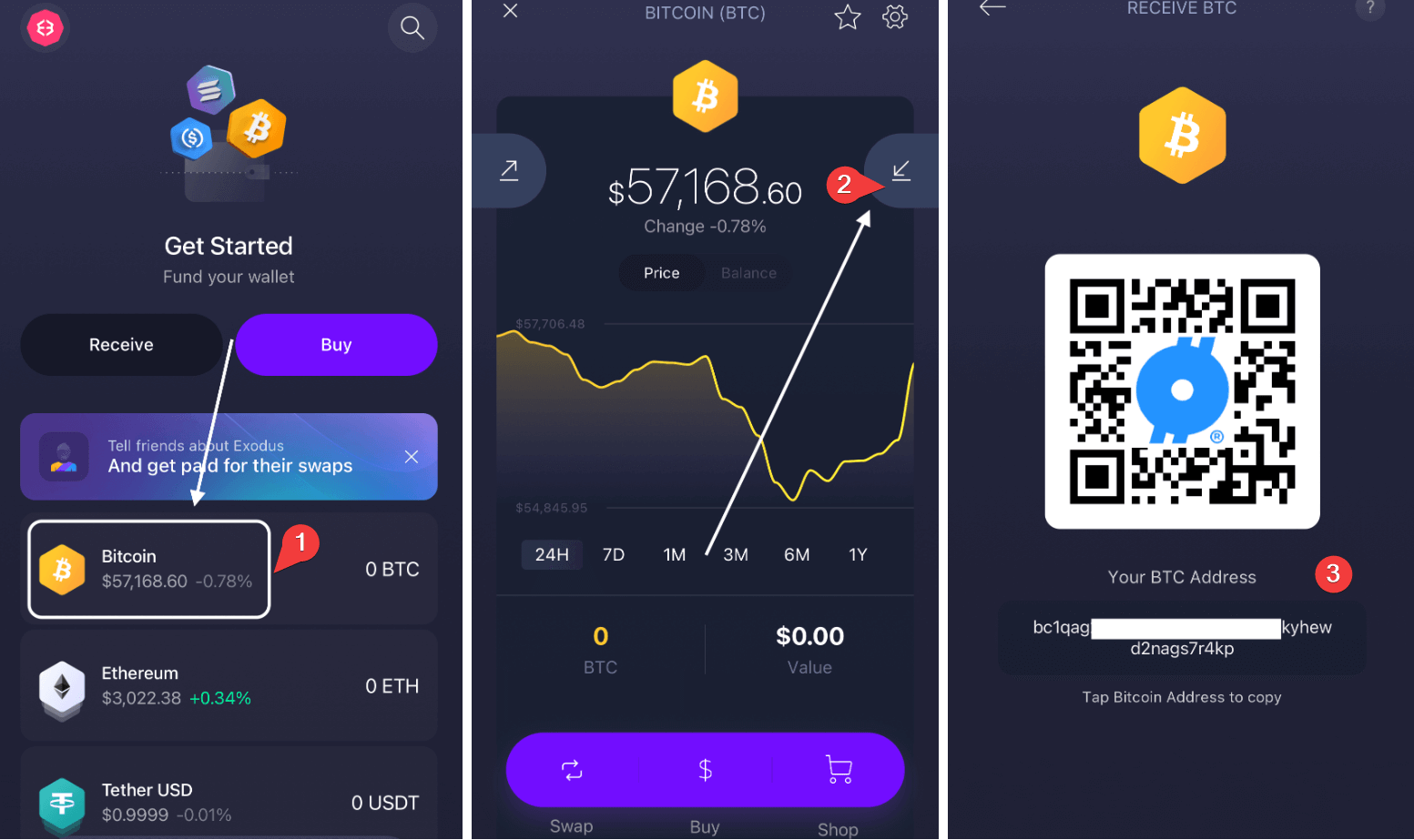 Share your address with a sender or use exchanges, swap services, or other wallets to transfer funds.