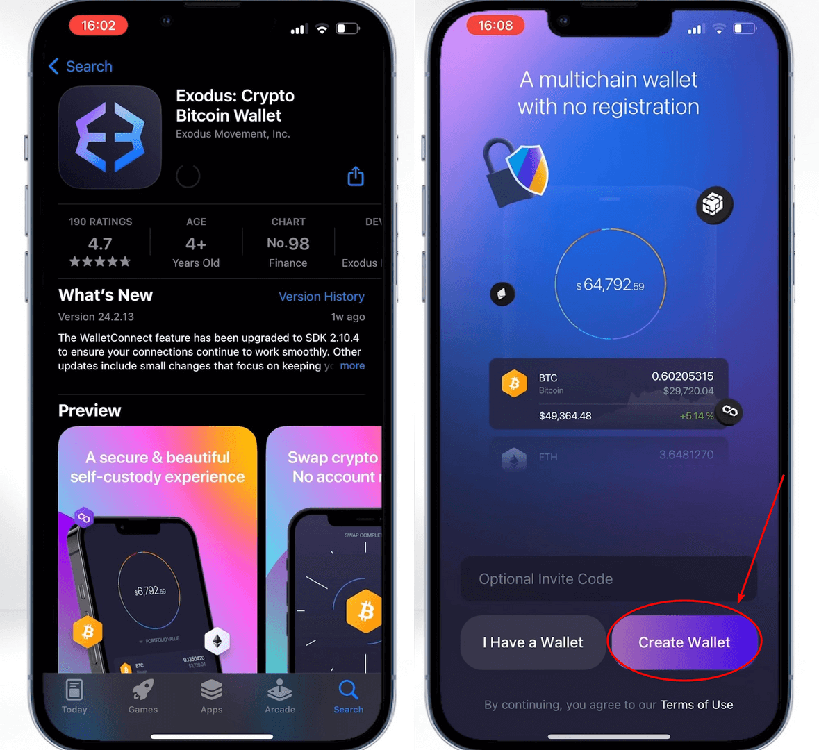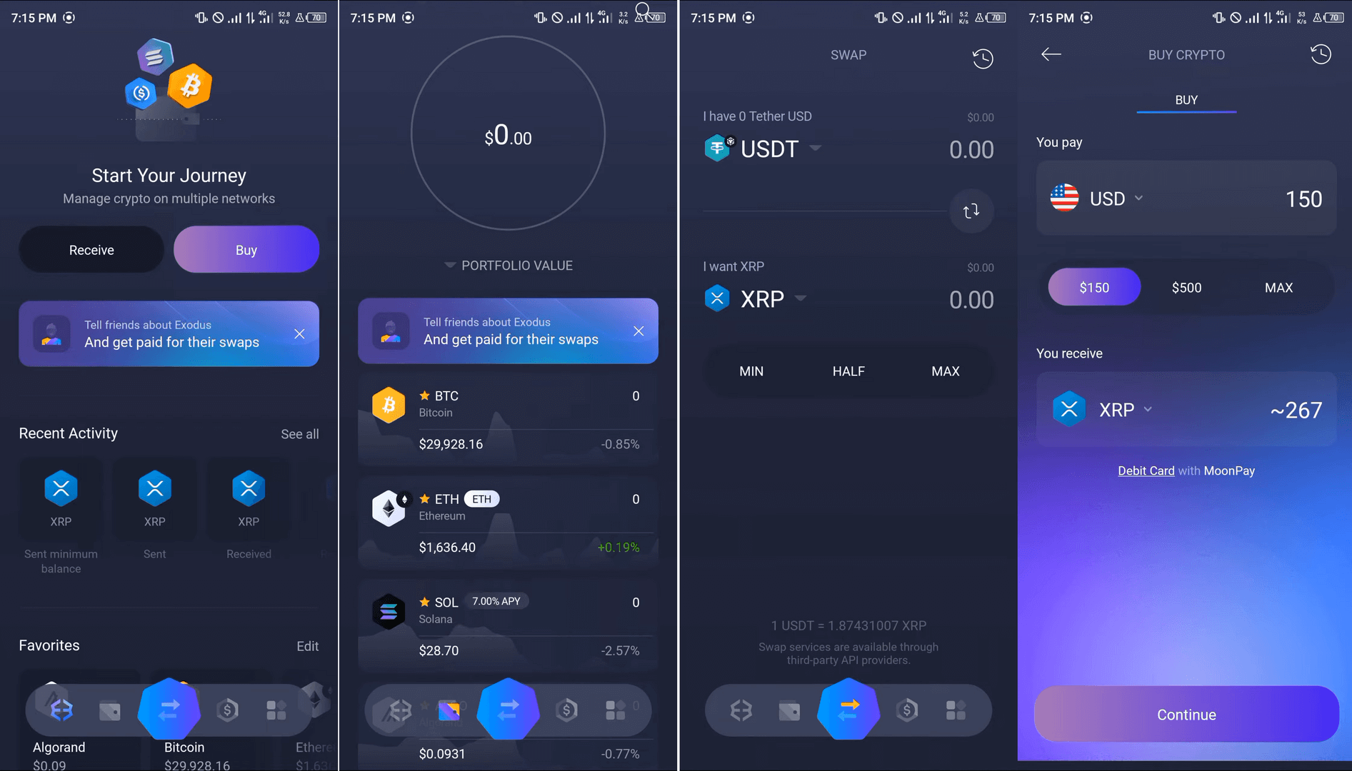 The Exodus Mobile Wallet lets you store and manage crypto, swap assets instantly, earn staking rewards, and view your NFT collection right in the app.