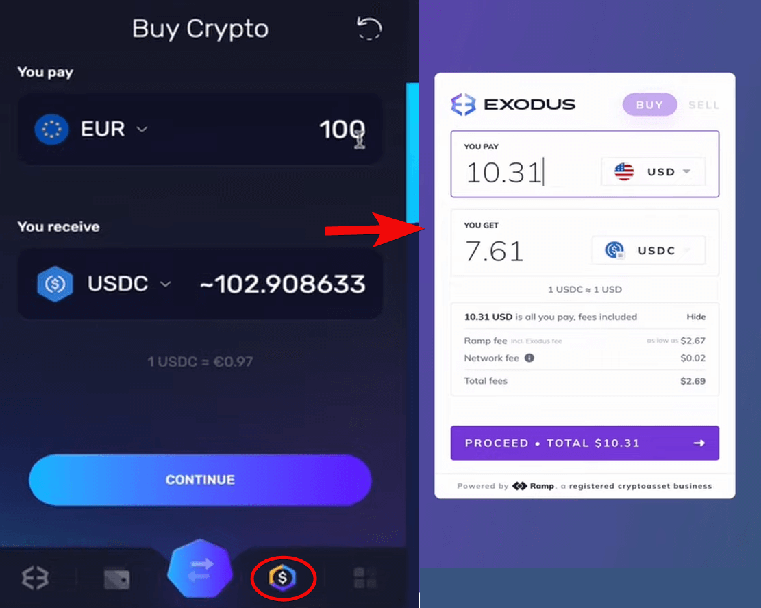 An alternative funding method is direct purchase via bank card inside the wallet.