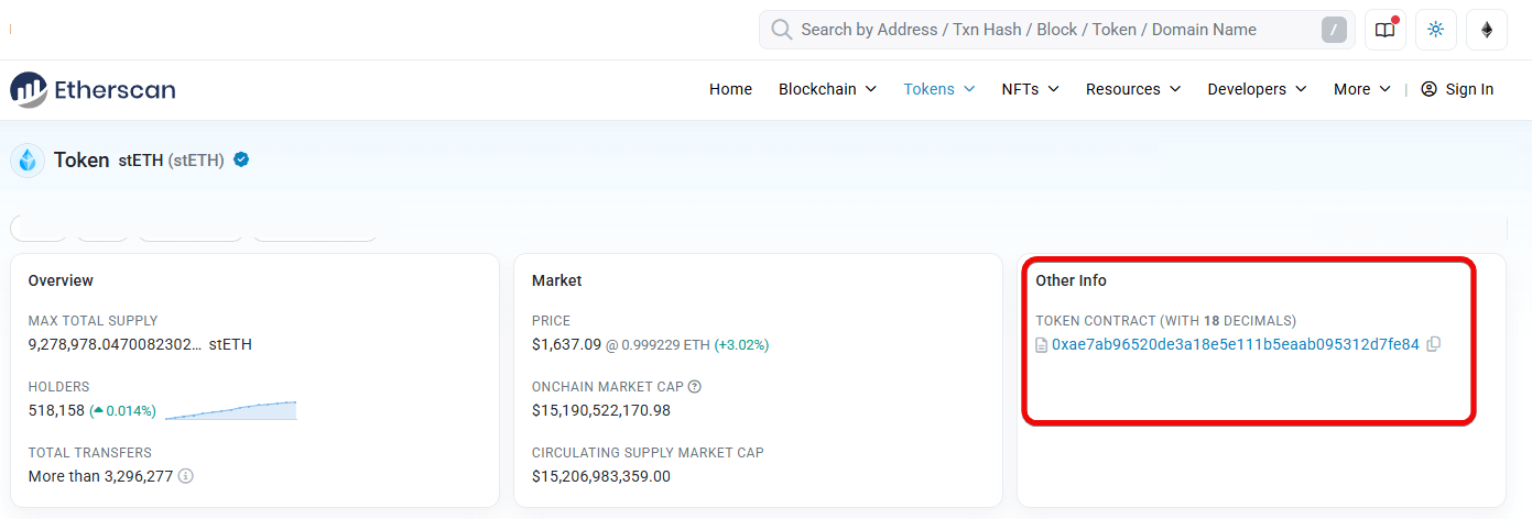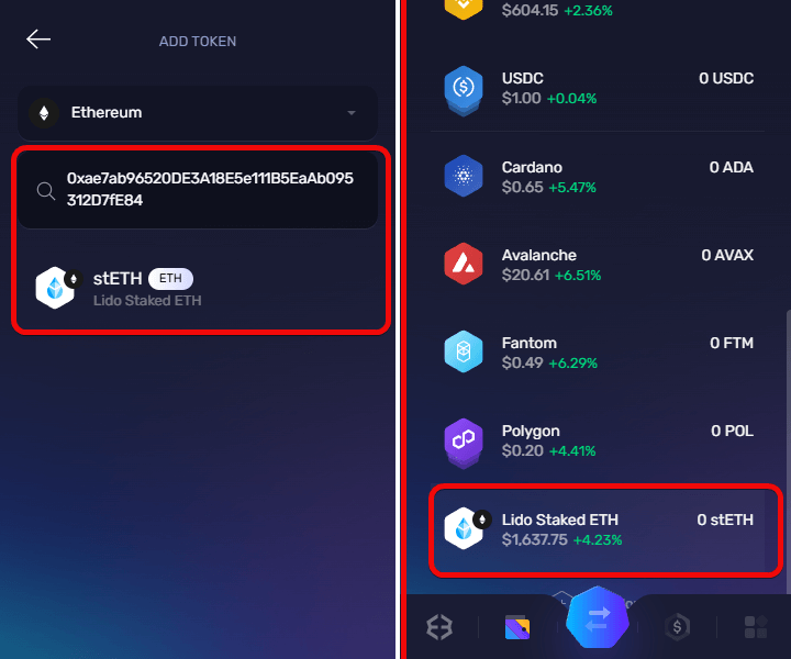 Finally, search for the token by name or paste its contract address. We used the stETH contract address, and it appeared at the bottom of the list.