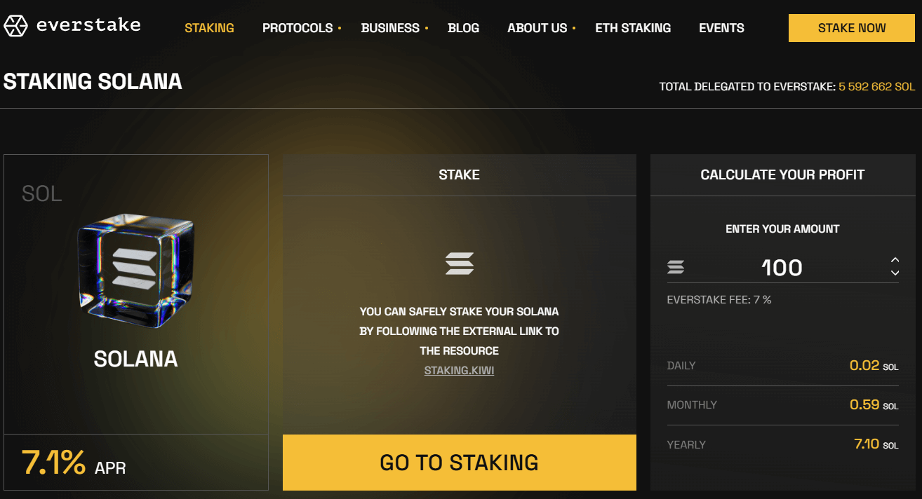 You’ll see an APY of 6.7% in Exodus, but comparing on Everstake shows around 7.1%.
