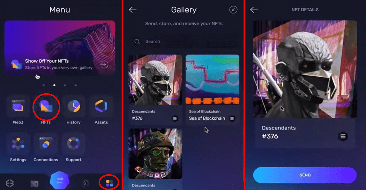 - NFTs – store, receive, and send NFTs directly in the browser extension.