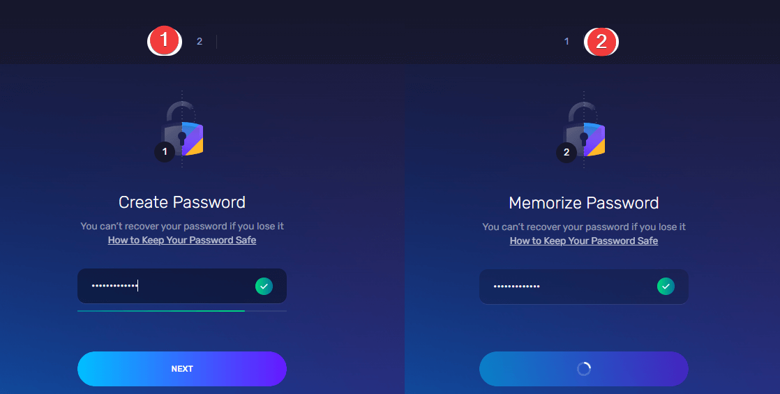 Next, the wallet will prompt you to set a strong password and confirm it.